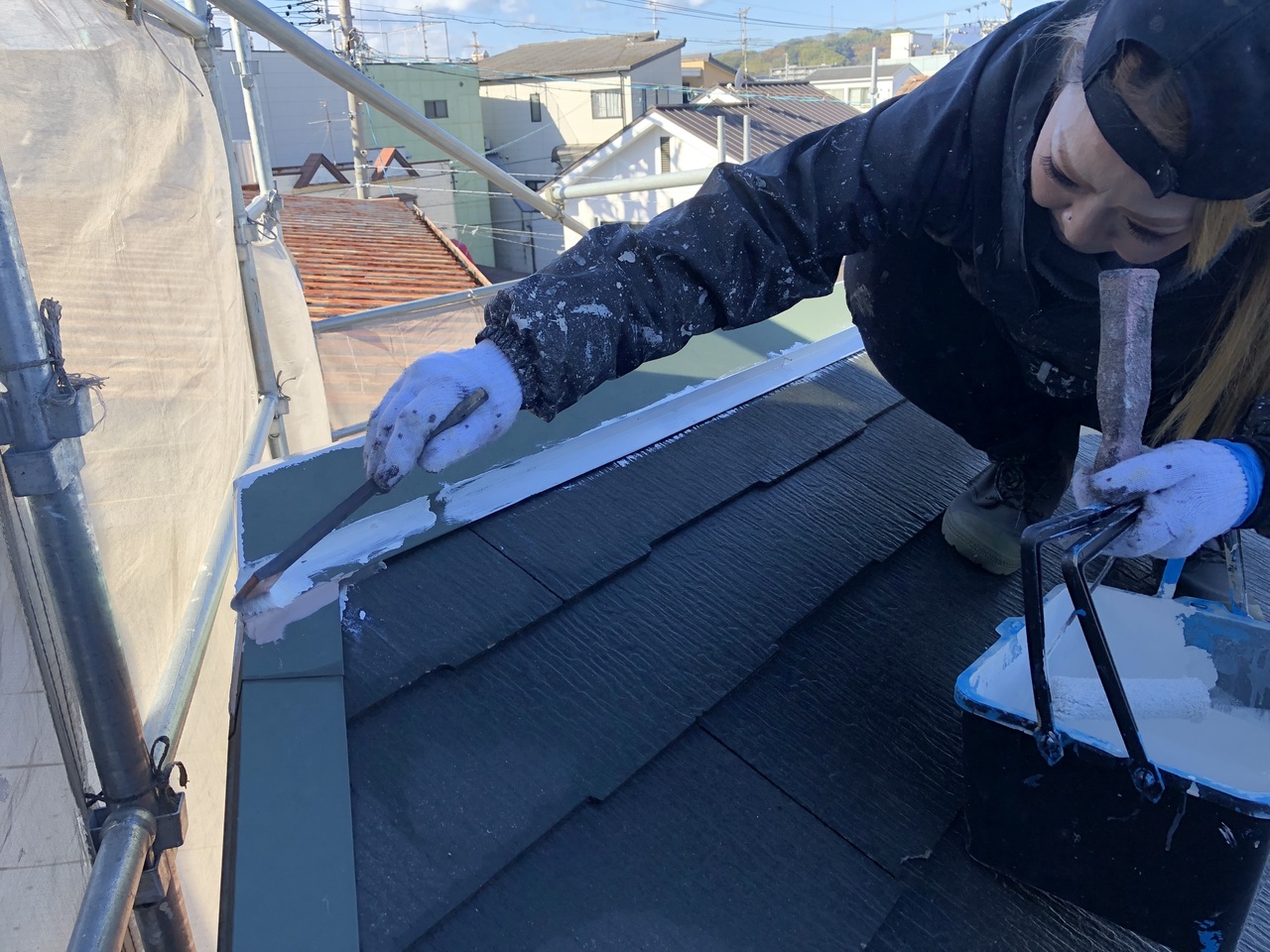 本日社長の現場では塗装まとめ、私の現場では外壁屋根中塗りを行いました。