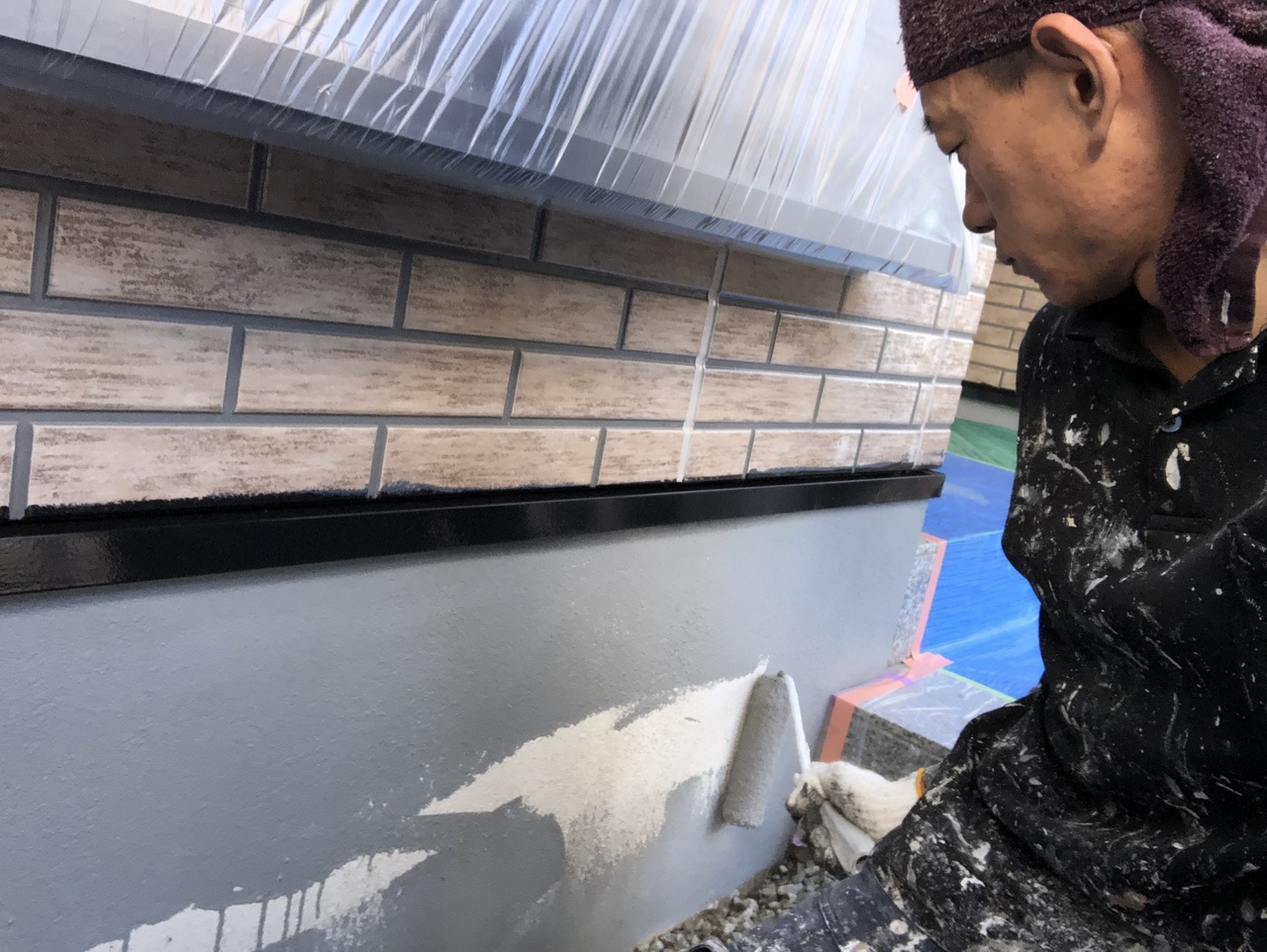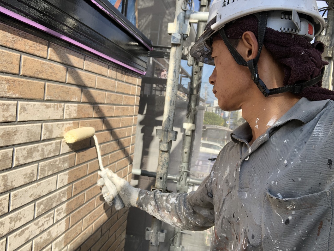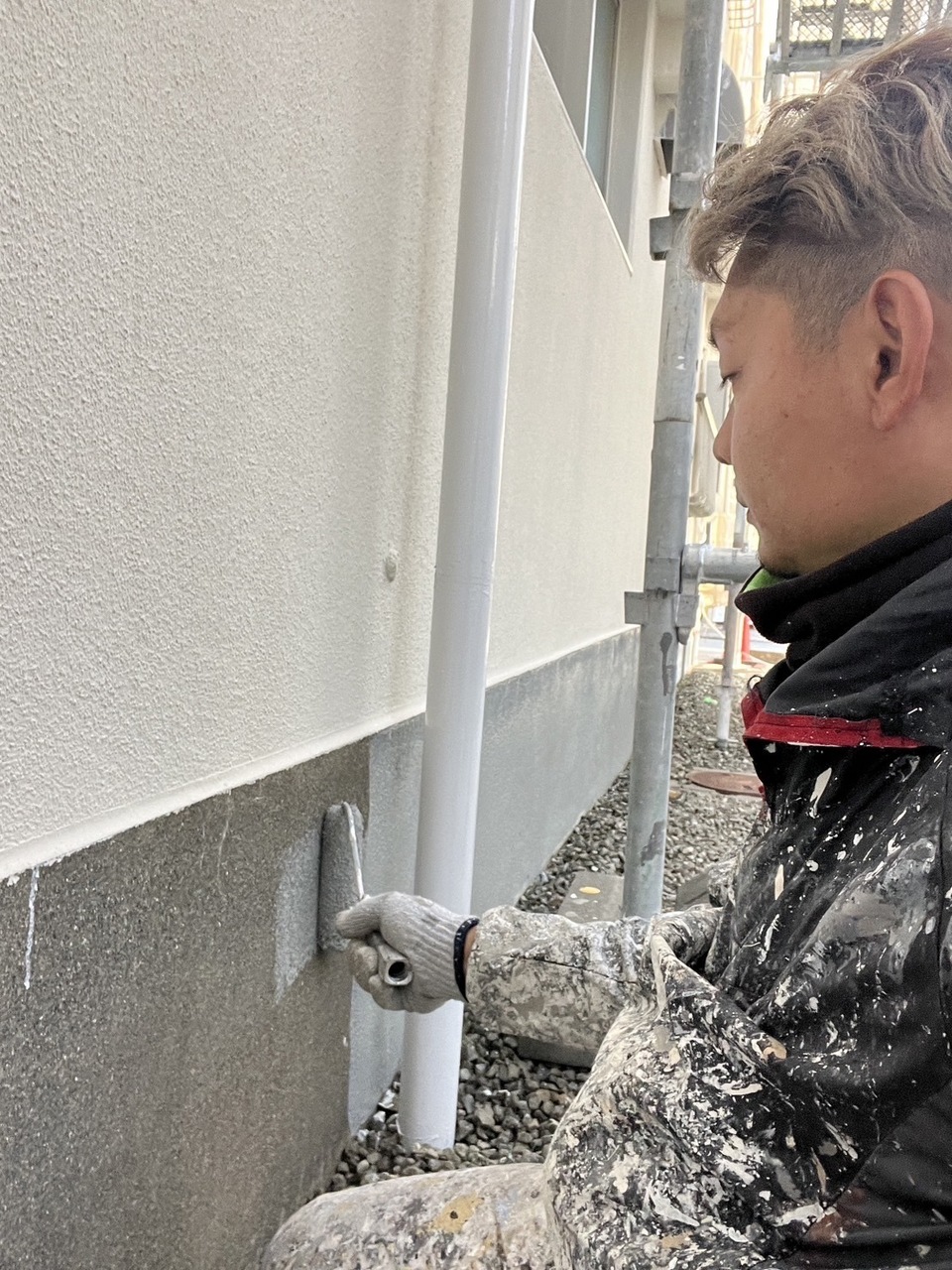 本日池ヶ谷の現場では各部塗装、社長の現場では外壁上塗り、私の現場では外壁中塗りを行いました。