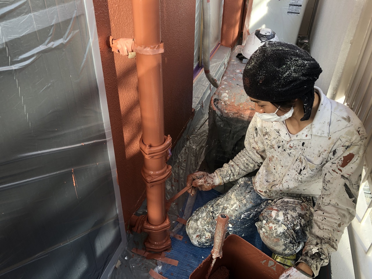 本日池ヶ谷の現場では塗装まとめ、社長の現場では各部塗装、私の現場ではシーリング工事を行いました。