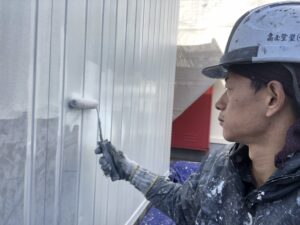 本日私の現場では物置倉庫下塗り、掃除タッチアップを行いました。