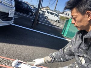 本日池ヶ谷の現場では各部塗装、社長の現場では各部塗装、私の現場では駐車場ライン塗装を行いました。