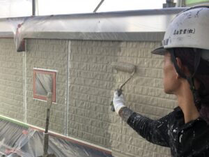 本日社長の現場では倉庫上塗り、各部塗装、私の現場では養生、軒天塗装、外壁下塗りを行いました。