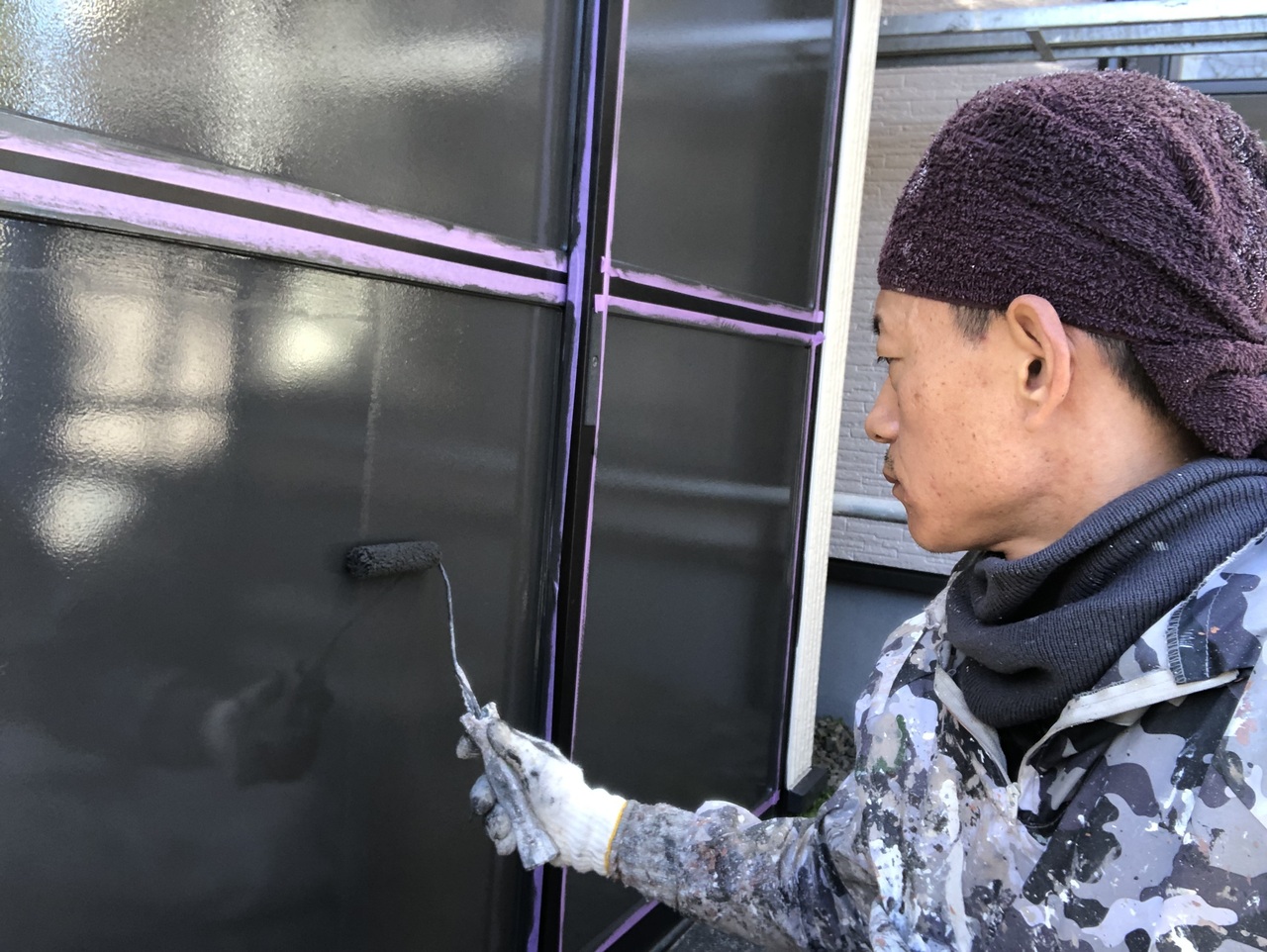 本日池ヶ谷の現場では塗装まとめ、社長の現場では外壁上塗り、各部塗装、私の現場では各部塗装を行いました。