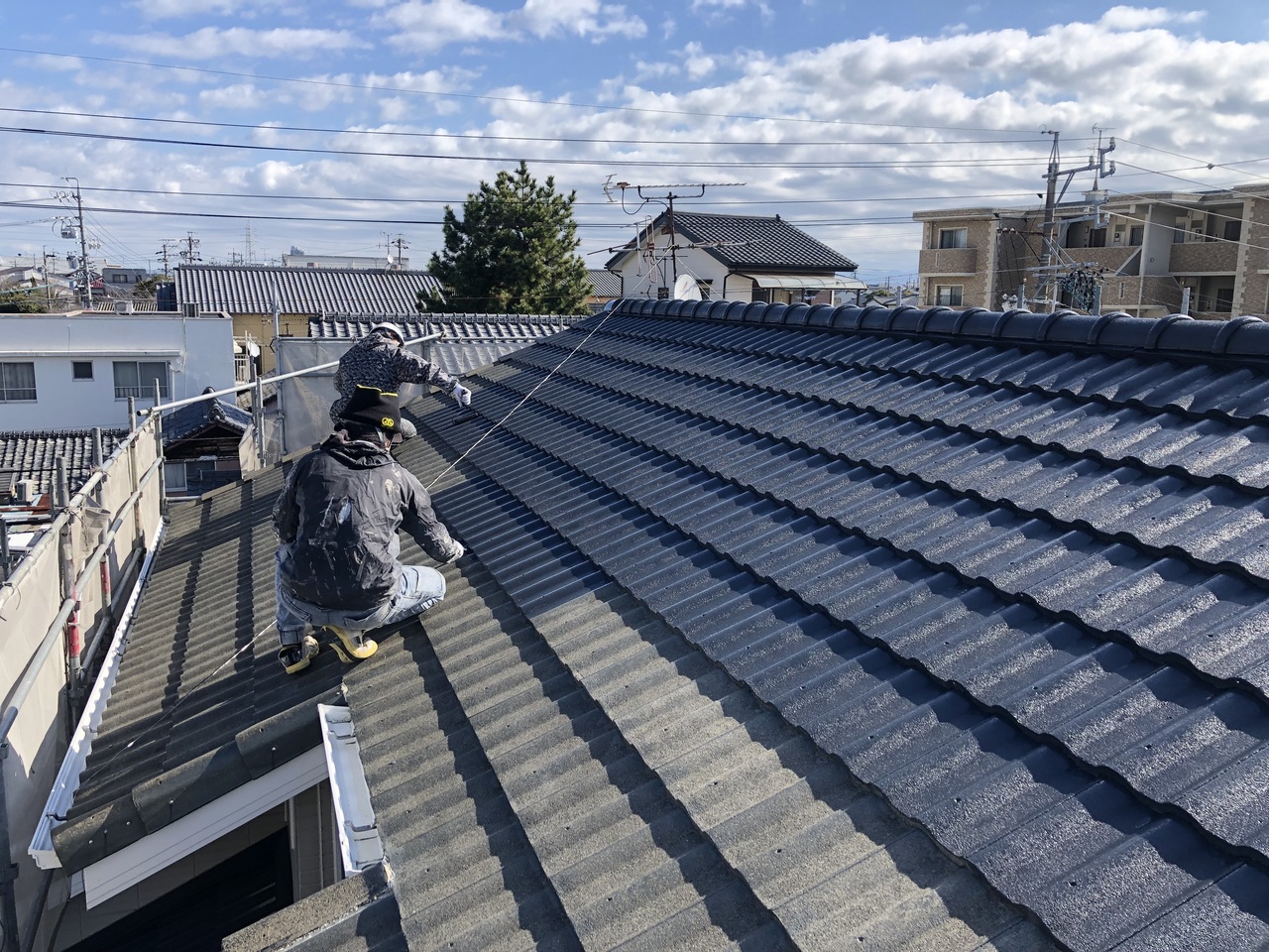 本日社長の現場では屋根上塗り、各部塗装、私の現場では塗装まとめを行いました。